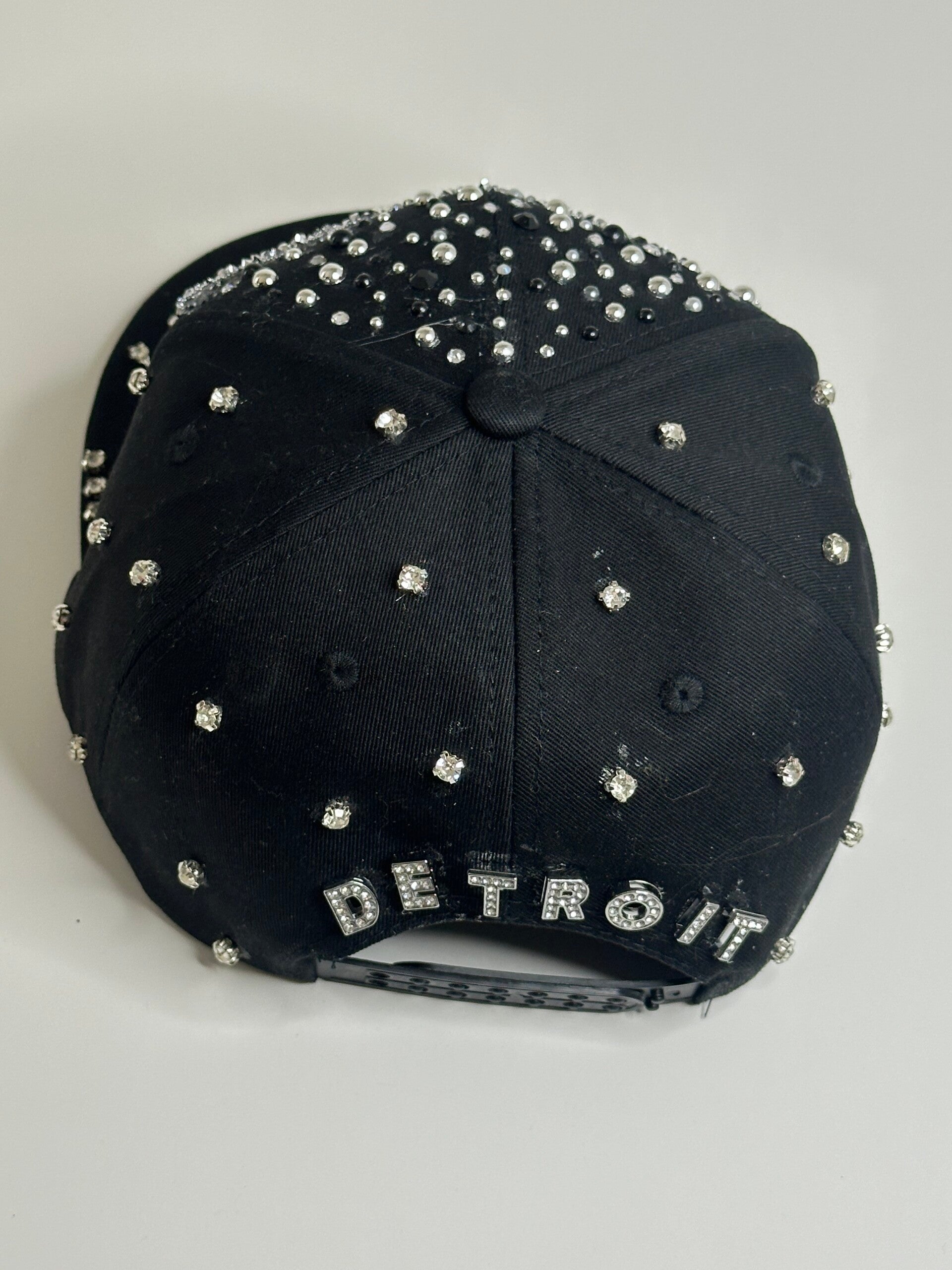 Detroit "ORIGINAL" diva Bling Snapback - Black and Silver Rhinestone Hat